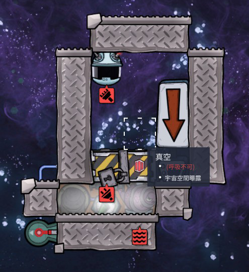 自動間引きはかならずポイントの左隣のマスに動物が来るので網掛けされた動物は個体あつかいになり空気ドアを貫通して水に落ちて溺死する。